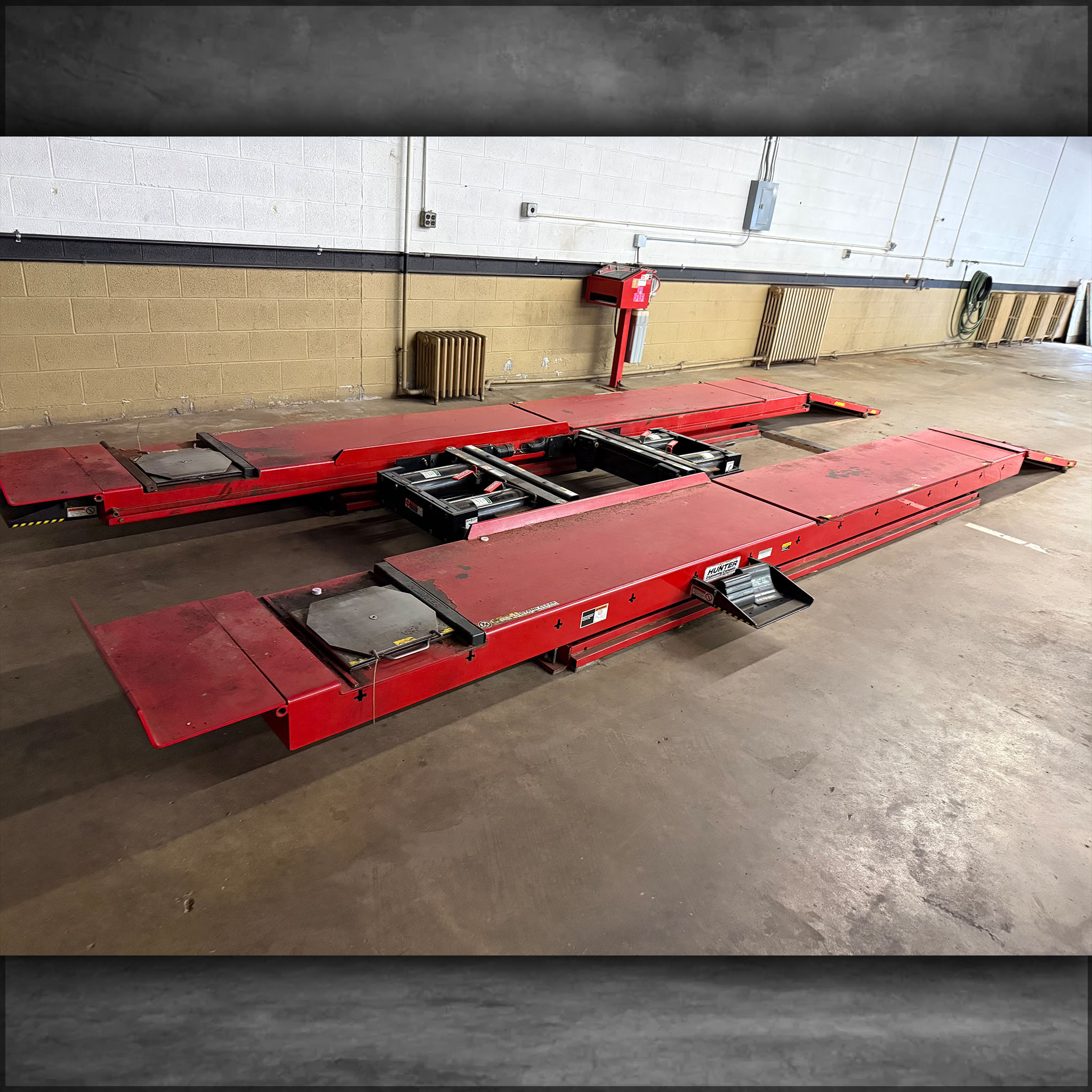 Hunter Alignment Rack, 23 feet long, 89 inches wide, Model RX12XL (2007).